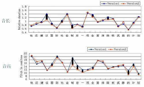 MSRA的研究人員發(fā)現(xiàn):兩遍錄音的整體音高分布是相當(dāng)一致的。但是,如果比較兩遍錄音中相應(yīng)單元的音高,也會(huì)看到明顯的差異。也就是說(shuō),雖然受到特定的上下文和語(yǔ)義表達(dá)的約束,音段音高的取值也有相當(dāng)大的變化范圍,其可變范圍可以大到所有音段的整體變化范圍的45%左右。