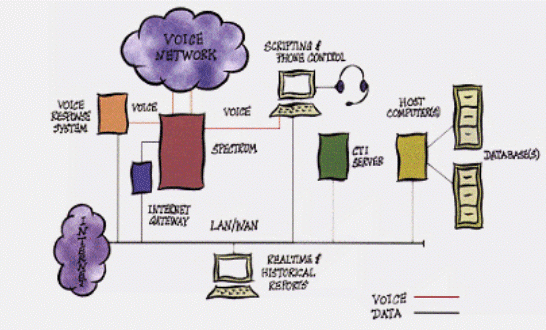 當(dāng)電話打入中心時,它的第一個目的地是負(fù)責(zé)該客戶的客戶服務(wù)代表。如果該客戶服務(wù)代表不在,可接向同工作小組的其他15名客戶服務(wù)代表。如果沒有服務(wù)代表在,該電話將轉(zhuǎn)向該工作小組的“伙伴”工作小組。如果沒有客戶服務(wù)代表在,電話將轉(zhuǎn)到總機(jī)。整個過程就象Sargent所說的“不超過十億分之一秒!