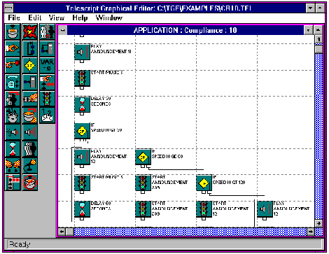 Enterprise 2002 圖形化腳本編輯器軟件工具可供Enterprise 2002的用戶使用。該圖形化編輯器是一種基于圖標(biāo)的呼叫流程管理工具,可用來查看和編輯通信腳本文件中所包含的呼叫流程。該工具為用戶提供了一個圖形化用戶界面,可使其通過在Windows應(yīng)用中點(diǎn)擊和拖拽鼠標(biāo)來創(chuàng)建和修改腳本文件。在操作過程中,用戶可隨時以輸入關(guān)鍵詞方式獲得相應(yīng)的幫助信息。