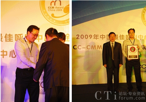 CTI論壇(ctiforum)9月15日消息: 2009年9月8日,第五屆中國最佳呼叫中心“金耳嘜大獎”頒獎典禮在北京隆重舉行。恒生通信的明星產(chǎn)品---HSIPCC在繼2007年、2008年后,連續(xù)第三年榮獲“金耳嘜”大獎中最具技術含量和市場價值的年度大獎——中國最佳呼叫中心技術產(chǎn)品獎。恒生通信副總經(jīng)理承孝強先生代表恒生通信,第三次捧起了該項大獎!恒生通信副總經(jīng)理-承孝強先生(左圖左一/右圖左二)接受大會頒發(fā)大獎