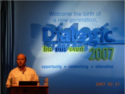 大會(huì)首先由Dialogic公司的全球資深副總裁 James Besley致辭。“我們回來了!”,James一句意味深長的開場(chǎng)白引來了全場(chǎng)長時(shí)間的熱烈鼓掌。是的,曾幾何時(shí),Dialogic在全球CTI領(lǐng)域是何等的輝煌,上個(gè)世紀(jì)九十年代他們?nèi)〉眠^驕人的業(yè)績,占據(jù)了全球市場(chǎng)的絕大部分份額,稱之為當(dāng)時(shí)CTI行業(yè)的先驅(qū)和領(lǐng)導(dǎo)者實(shí)不為過。