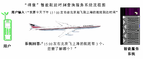 使用"得意"智能航班時刻查詢服務系統,用戶可以通過短信/WAP/互聯網以自然語言的方式與服務系統進行互動,方便地查詢各個航班的時刻,以及相關的信息。當用戶在對話過程中遇到困難時,系統還會主動引導用戶獲取想要的信息,能為乘客和交通機構提供很好的服務手段,實現真正的"智能"。得意音通供稿 CTI論壇編輯