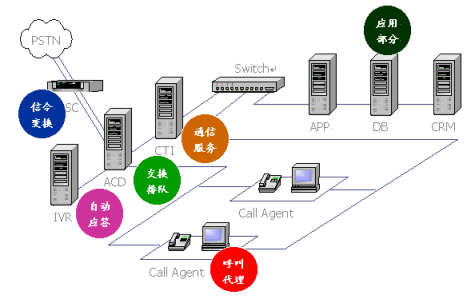 。。CTI Builder本身是一個(gè)軟交換機(jī),具有普通程控交換機(jī)的功能,如:分機(jī)切轉(zhuǎn)、外線呼入、內(nèi)線呼出、轉(zhuǎn)接電話、代接電話等等,同時(shí)還具有一些高級(jí)功能如:語(yǔ)音信箱、排隊(duì)機(jī)、內(nèi)線組呼叫、高級(jí)選線等功能。也就是說,系統(tǒng)已經(jīng)提供了呼叫中心通用的功能,用戶只需要定義自己的業(yè)務(wù)而不必關(guān)心呼叫中心的內(nèi)部交換。