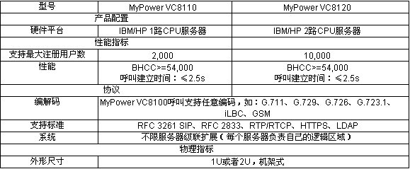 MyPower VC8100 IP通信服務(wù)器負(fù)責(zé)網(wǎng)關(guān)、IP電話機(jī)以及軟電話的注冊、號碼路由、增值業(yè)務(wù)提供等功能,基于MyPower VC8100的IP通信解決方案可以給用戶提供:IP語音通信、IP視頻通信、IP傳真通信;可以提供語音郵件、自動總機(jī)、號碼攜帶、按名字呼叫、搜尋組等增值應(yīng)用;可以提供呼叫轉(zhuǎn)接、轉(zhuǎn)移、停泊、代答、保持等補(bǔ)充語音業(yè)務(wù)。