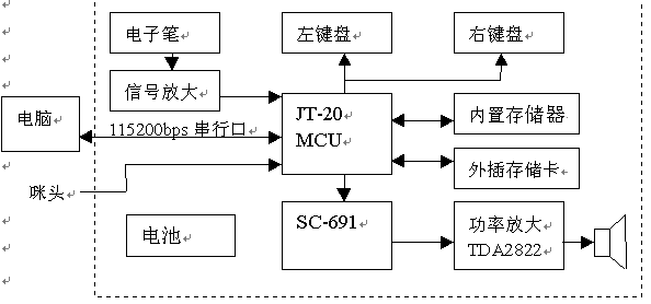 本方案采用JT-20 MCU加上Sensory SC691語音合成芯片。