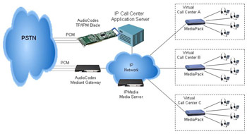 AudioCodes IPmedia™ (IPM) VoIP 媒體處理刀片服務(wù)器,使企業(yè)應(yīng)用的開發(fā)人員能夠通過(guò)應(yīng)用程序服務(wù)器在普通機(jī)架中插入媒體網(wǎng)關(guān)功能。