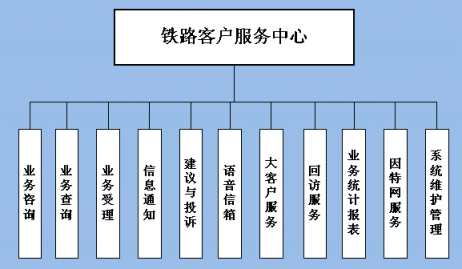 鐵路客戶服務中心系統(tǒng)的業(yè)務功能結構如下圖所示: