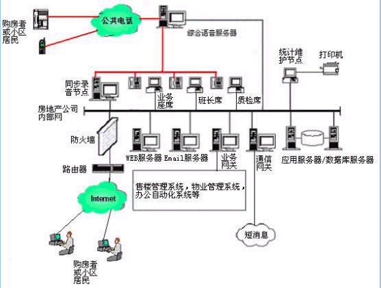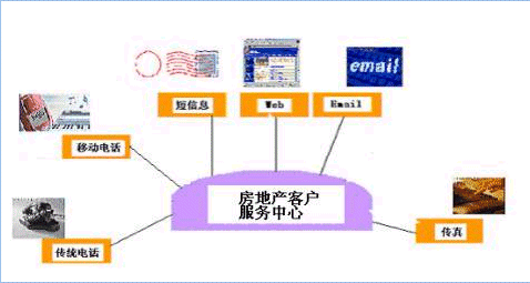 。。用戶利用電話、傳真、WEB、手機短信息、電子郵件等撥打某一特服號碼(如95xxx)進入房地產(chǎn)多媒體客戶服務中心系統(tǒng),本系統(tǒng)依托房地產(chǎn)企業(yè)各類業(yè)務技術支持系統(tǒng),通過人工受理或自動語音服務等方式為各類客戶提供購房和物業(yè)管理服務;形成了對外服務于客戶,對內(nèi)管理、分析、決策系統(tǒng)相結合的呼叫中心。