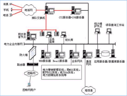 。。用戶利用電話、傳真、電子郵件、因特網(wǎng)、手機(jī)、網(wǎng)絡(luò)電話等撥打某一特服號碼(如95598)進(jìn)入電力多媒體客戶服務(wù)中心系統(tǒng),本系統(tǒng)依托電力企業(yè)各類業(yè)務(wù)技術(shù)支持系統(tǒng),通過人工受理或自動語音服務(wù)等方式為各類客戶提供全天24小時不間斷的電力服務(wù);形成了對外服務(wù)于用戶的無形窗口,對內(nèi)管理、分析、決策系統(tǒng)相結(jié)合的新型客戶服務(wù)中心。