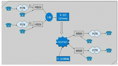 PRI,ISDN BRI,E&M或VoIP 等接口實現(xiàn),每條話路只須8Kbit/s帶寬,并支持網(wǎng)絡(luò)優(yōu)化路由及D通道座席預(yù)約,大大降低網(wǎng)絡(luò)連接費用,提高運行效率。目前主流的方式是采用VoIP技術(shù)。如下圖所示: