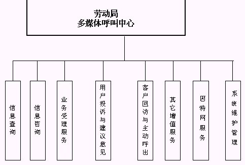 本系統(tǒng)具有自動(dòng)語音服務(wù)、人工坐席服務(wù)、信息咨詢、信息查詢、客戶投訴建議、客戶回訪與信息調(diào)查、因特網(wǎng)服務(wù)、管理人員對(duì)語音記錄的查詢等功能,并且結(jié)合圖形化的管理、監(jiān)控界面,使得客戶隨時(shí)隨地可以利用身邊的各種通訊工具獲得勞動(dòng)局的方便快捷的服務(wù)。