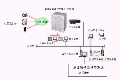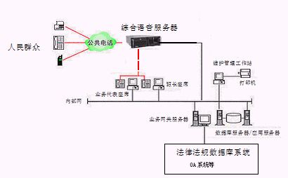 該系統(tǒng)的設(shè)計采用先進(jìn)的三層CLIENT/SERVER網(wǎng)絡(luò)體系結(jié)構(gòu),集目前先進(jìn)的計算機(jī)技術(shù)、通信技術(shù)、計算機(jī)電信集成(CTI)技術(shù)、多媒體呼叫接入技術(shù)、智能接入交換分配技術(shù)、數(shù)字語音處理技術(shù)、異構(gòu)系統(tǒng)信息交互技術(shù)、INTERNET網(wǎng)絡(luò)技術(shù)、安全容錯技術(shù)、網(wǎng)絡(luò)組網(wǎng)技術(shù)等于一體,并與地級市司法行政部門/法院已有技術(shù)支持系統(tǒng)(如MIS系統(tǒng)、法律法規(guī)數(shù)據(jù)庫系統(tǒng)等)緊密結(jié)合在一起,突破時空的限制,通過人工座席、自動語音/傳真、司法部門相關(guān)人員等為群眾提供電話、傳真、手機(jī)等多種服務(wù)形式的周到、快捷、全方位的法律服務(wù),為人民群眾與地級市司法行政部門/法院之間架起一座密切聯(lián)系的橋梁。