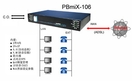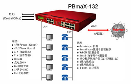 在21世紀的今日,隨著網(wǎng)絡應用的普及,無論是個人或企業(yè)對于交換機的觀念若仍拘泥于傳統(tǒng)的思維,將是落伍的。免費網(wǎng)絡電話、分散式系統(tǒng),將是傳統(tǒng)交換機 在增加語音信箱/自動總機功能之后,系統(tǒng)機制的重大變革。本公司推出的PBmaX/PBmiX系列IP-PBX,不但將上述所有功能整合于一體,進一步可內建公司VPN、Web服務器、GateKeeper等功能,呈現(xiàn)出數(shù)字交換機的全新風貌,并將新的電話使用觀念帶進企業(yè)、SOHO辦公室與家庭內。