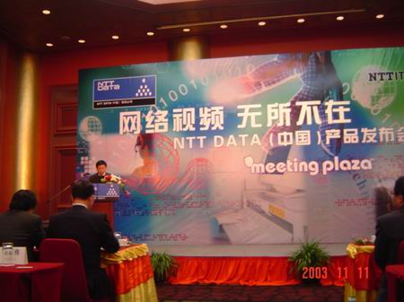 2003年11月11日,NTT DATA(中國)有限公司,在長城飯店舉行了名為“網(wǎng)絡(luò)視頻——無所不在”的產(chǎn)品發(fā)布會(huì)。會(huì)上,NTT DATA(中國)有限公司正式推出了一款網(wǎng)絡(luò)視頻軟件產(chǎn)品——“MeetingPlaza”。此產(chǎn)品開拓了視頻系統(tǒng)在圖像效果、控制靈活度以及性價(jià)比上的全新應(yīng)用模式。該產(chǎn)品的開發(fā)商N(yùn)TT-IT,自2001年6月起在日本開始系統(tǒng)的銷售及提供ASP服務(wù)。到現(xiàn)在已經(jīng)向500家以上的日本企業(yè)及地方政府提供了服務(wù),在日本深受好評(píng)。在中國,雖然軟件視頻會(huì)議系統(tǒng)還處在起步階段,但依據(jù)未來視頻通訊的廣大需求,以及“MeetingPlaza”具有的投入成本低、限制少和適用性強(qiáng)的特點(diǎn),都將使該產(chǎn)品更加具有市場(chǎng)潛力。