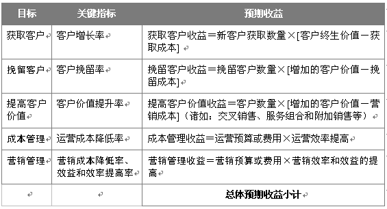 "效益目標(biāo)" 這一戰(zhàn)略考慮是設(shè)定企業(yè)客戶關(guān)系管理戰(zhàn)略中的針對細(xì)分客戶的收益目標(biāo),與之相關(guān)聯(lián)的戰(zhàn)略重點是最大化針對細(xì)分客戶的客戶價值。這一部分將對以后工作中的客戶關(guān)系管理客戶收益提供方向和評估方法。
