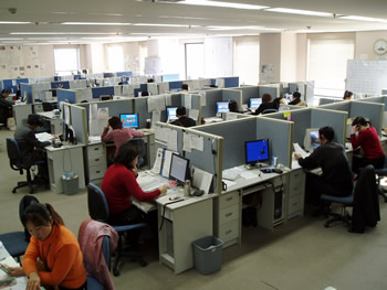當你站在這布局緊湊但井井有條、具有典型日式風格的辦公大廳里,看到這些彬彬有禮的座席代表,耳邊又不時傳來各種聲調的日語時,你會毫不懷疑地認為自己是在東京或是橫濱的某個大公司的呼叫中心里。然而,從大廈的窗外望去,遠處聳立的大連電視塔和眼前的勞動公園都提醒你:這是在中國大連的商業(yè)區(qū)中心。