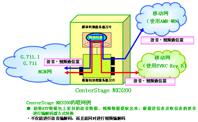 NX3200(以下簡稱「NX3200」)」上,內(nèi)置了行業(yè)首例運(yùn)營商級(jí)寬帶編解碼轉(zhuǎn)換功能。本裝置迅速對(duì)應(yīng)了ITU-T(注2)制定的國際標(biāo)準(zhǔn)G.711.1(注3)等寬帶編解碼器標(biāo)準(zhǔn),在運(yùn)用移動(dòng)網(wǎng)、固定網(wǎng)的各種語音編解碼器及視頻編解碼器之間,能同時(shí)進(jìn)行大容量通信。本產(chǎn)品即日起開始銷往市場。
