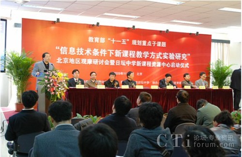 CTI論壇(ctiforum)11月11日消息(記者 潘婷):2009年11月5日, 教育部基礎(chǔ)教育課程教材發(fā)展中心在北京日壇中學(xué)隆重舉辦了“信息技術(shù)條件下新課程教學(xué)方式實(shí)驗(yàn)研究”北京地區(qū)觀摩研討會(huì)暨日壇中學(xué)課程資源中心啟動(dòng)儀式。到會(huì)的有教育部及北京市教委相關(guān)領(lǐng)導(dǎo)及北京市內(nèi)及外省市學(xué)校的的領(lǐng)導(dǎo)及老師600多人。圖:觀摩研討會(huì)開幕