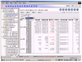 深圳市金點(diǎn)科技有限公司率先采用國際先進(jìn)的商務(wù)智能(BI)和數(shù)據(jù)挖掘技術(shù)、借鑒國外證券行業(yè)成熟的管理經(jīng)驗(yàn),結(jié)合國內(nèi)證券行業(yè)的特點(diǎn),推出"證券經(jīng)紀(jì)業(yè)務(wù)綜合管理分析系統(tǒng)",該系統(tǒng)是證券經(jīng)紀(jì)業(yè)務(wù)的集中管理和決策分析系統(tǒng),具有很強(qiáng)的靈活分析功能。該系統(tǒng)主要是對證券經(jīng)紀(jì)業(yè)務(wù)經(jīng)營決策、市場營銷和客戶服務(wù)進(jìn)行管理和分析,為證券經(jīng)紀(jì)業(yè)務(wù)管理部門加強(qiáng)對營業(yè)機(jī)構(gòu)管理、制定營銷戰(zhàn)略、加強(qiáng)對證券經(jīng)紀(jì)隊(duì)伍的建設(shè)和提高客戶服務(wù)質(zhì)量提供科學(xué)的決策依據(jù)。
