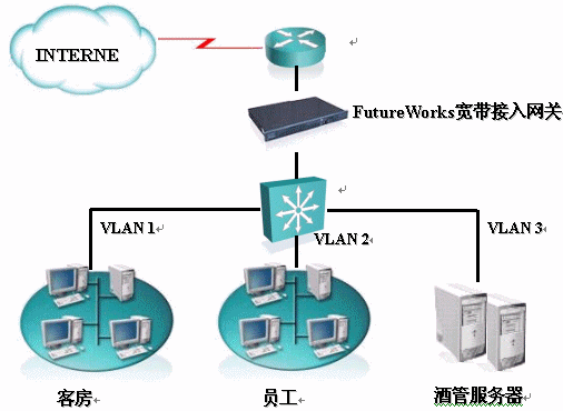 FutureWorks寬帶計費(fèi)系統(tǒng)針對南京大飯店上網(wǎng)計費(fèi)的解決方案結(jié)構(gòu)圖