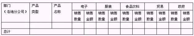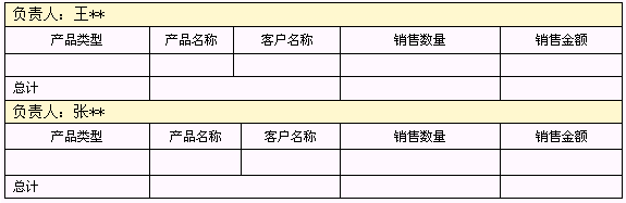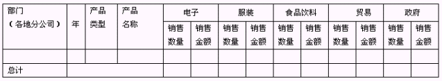 作為分公司銷(xiāo)售經(jīng)理,需要查看分公司每個(gè)銷(xiāo)售員的銷(xiāo)量統(tǒng)計(jì),便于向銷(xiāo)售總監(jiān)做好匯報(bào),需要同時(shí)知道不同產(chǎn)品類(lèi)型的銷(xiāo)量?梢酝ㄟ^(guò)分組報(bào)表來(lái)實(shí)現(xiàn),如下圖:
