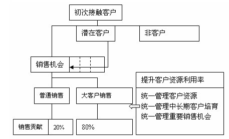 客戶信息的共享和利用不好:隨著企業(yè)業(yè)務(wù)的發(fā)展,一般會(huì)在產(chǎn)品線、行業(yè)(客戶群)、區(qū)域等發(fā)展和滲透,而客戶信息全部存在業(yè)務(wù)員和不同的業(yè)務(wù)部門,一方面客戶信息的規(guī)范沒(méi)有,離散,不可利用,另一方面無(wú)方法和機(jī)制保障各業(yè)務(wù)部門的共享和業(yè)務(wù)協(xié)同,通常會(huì)出現(xiàn)幾個(gè)業(yè)務(wù)部門搶同一個(gè)客戶;更可怕是業(yè)務(wù)調(diào)整和變動(dòng),以及人員的流動(dòng)造成客戶資源的流失,出現(xiàn)客戶管理的盲區(qū)。
