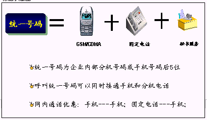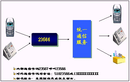 鐵路內(nèi)部員工可以統(tǒng)一所有的通信工具,只使用一個號碼,一次呼叫便可以完成通信,使通信更加簡單、可靠。可以實現(xiàn)換機換網(wǎng)不換號,用戶獲得一個終身的聯(lián)系號碼,用戶無論更換任何通信工具,聯(lián)系號碼和方式不會改變。例如:在路局領(lǐng)導(dǎo)找下屬的時候,只需要撥打他的統(tǒng)一號碼,便可以直接找到他。不必考慮他是否在外出還是在辦公室,是否更換了手機號碼。統(tǒng)一號碼就像他員工號碼,始終不變,即撥即通!