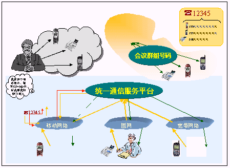 企業(yè)會議召集人通過撥打企業(yè)會議群組號碼,可以同時呼叫群組內(nèi)所有的成員參加開會;會議組員不必到會議現(xiàn)場也能參加會議,提高了企業(yè)的辦公效率;會議流程如下:.鐵路內(nèi)部通信