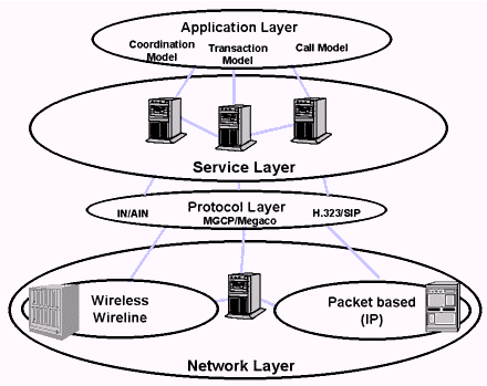 JAIN集成了有線(如PSTN)、無(wú)線(GSM、CDMA)和包交換(IP、ATM)網(wǎng)絡(luò),如上圖所示。