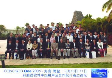 2005年3月11日,在絢麗的煙火、優(yōu)雅的水上芭蕾和來(lái)自全國(guó)金融、電信、航空、政府等70多位代表的掌聲中,Concerto One - 科勝通軟件2005中國(guó)用戶及合作伙伴高層論壇于風(fēng)景如畫的海南博鰲落下帷幕。