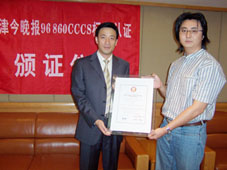 2004年9月9日,天津今晚報(bào)公眾服務(wù)中心通過(guò)了《全國(guó)呼叫中心運(yùn)營(yíng)績(jī)效標(biāo)準(zhǔn)》(CCCS-OP-2003)認(rèn)證,并獲得由中國(guó)信息化推進(jìn)聯(lián)盟客戶(hù)關(guān)系管理專(zhuān)業(yè)委員會(huì)頒發(fā)的認(rèn)證證書(shū)(四星級(jí)客戶(hù)服務(wù)中心),成為國(guó)內(nèi)傳媒業(yè)首家通過(guò)此認(rèn)證的呼叫中心。
