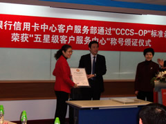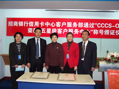 向招商銀行信用卡中心頒發(fā)五星級(jí)認(rèn)證證書(shū) |