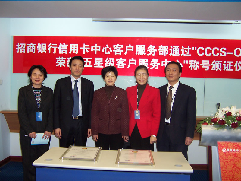 經(jīng)過(guò)長(zhǎng)達(dá)8個(gè)月時(shí)間的準(zhǔn)備和嚴(yán)格的認(rèn)證審核,由中國(guó)信息化推進(jìn)聯(lián)盟客戶(hù)關(guān)系管理專(zhuān)業(yè)委員會(huì)常務(wù)副主任郭晨東先生親自?huà)鞄浗M成的項(xiàng)目評(píng)審專(zhuān)家小組從領(lǐng)導(dǎo)能力、戰(zhàn)略規(guī)劃與部署、客戶(hù)價(jià)值、績(jī)效衡量與分析、現(xiàn)場(chǎng)管理、人員管理、流程管理、運(yùn)營(yíng)績(jī)效結(jié)果等八個(gè)范疇對(duì)招商銀行信用卡中心客戶(hù)服務(wù)部進(jìn)行了全面而嚴(yán)格的審核,涉及五大類(lèi)上百項(xiàng)詳細(xì)的運(yùn)營(yíng)績(jī)效指標(biāo),歷經(jīng)初審評(píng)估、現(xiàn)場(chǎng)初審、初審評(píng)估報(bào)告提交與確認(rèn)、標(biāo)準(zhǔn)試運(yùn)行、績(jī)效全面提升、最終評(píng)審等階段,最終審核確認(rèn)招商銀行信用卡中心客戶(hù)服務(wù)完全符合并部分超越《全國(guó)呼叫中心運(yùn)營(yíng)績(jī)效標(biāo)準(zhǔn)》(CCCS-OP-2003)的各項(xiàng)標(biāo)準(zhǔn)指標(biāo)和要求,于2005年1月31日正式批準(zhǔn)招商銀行信用卡中心通過(guò)該標(biāo)準(zhǔn)的五星級(jí)認(rèn)證,授予“五星級(jí)客戶(hù)服務(wù)中心”稱(chēng)號(hào)。
