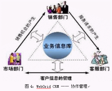 企業(yè)的銷售、服務(wù)和市場(chǎng)業(yè)務(wù)有一個(gè)共同的特點(diǎn),就是都與客戶打交道,都是以"客戶為中心"開展業(yè)務(wù)的。面對(duì)共同的客戶,需要共享相同的客戶信息。與此同時(shí),各部門的業(yè)務(wù)也不是孤立的,而是在互動(dòng)的過程中相互促進(jìn),共同提升。WebGrid CRM系統(tǒng)根據(jù)CRM理念而設(shè)計(jì),將銷售、市場(chǎng)和服務(wù)業(yè)務(wù)進(jìn)行整合,提供了統(tǒng)一的操作平臺(tái),實(shí)現(xiàn)了業(yè)務(wù)信息的共享。此外,WebGrid CRM制定了靈活的工作流程,實(shí)現(xiàn)了各個(gè)業(yè)務(wù)部門之間的信息交互:由市場(chǎng)活動(dòng)可以生成銷售機(jī)會(huì);服務(wù)過程中的銷售意向也可以通過反饋提交到銷售部門中去……WebGrid CRM的這一功能消除了市場(chǎng)、銷售和服務(wù)各部門之間的信息孤島,將三個(gè)部門緊密結(jié)合,形成一個(gè)有機(jī)的整體,從而提升了企業(yè)整體的運(yùn)營(yíng)效率。