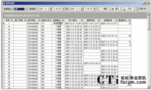 系統(tǒng)提供統(tǒng)計(jì)報(bào)表生成工具,實(shí)現(xiàn)對系統(tǒng)訪問次數(shù)的統(tǒng)計(jì)與分析,并以圖示直觀地反映出用戶關(guān)注的熱點(diǎn)?砂粗鹘刑(hào)碼、局向統(tǒng)計(jì)時(shí)長,并自動(dòng)生成效果圖,直觀表現(xiàn)業(yè)務(wù)發(fā)展。還可根據(jù)主叫統(tǒng)計(jì)時(shí)長,當(dāng)天分析,本周分析,本月分析,提供時(shí)長走勢圖(可以以小時(shí)為單位分析時(shí)長的走勢,也可以以天為單位分析時(shí)長的走勢)