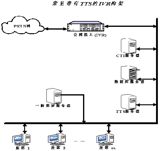 目前常見(jiàn)的IVR系統(tǒng)大都是通用的工控機(jī)平臺(tái)上插入語(yǔ)音板卡組成,并支持中文語(yǔ)音合成TTS等技術(shù)。