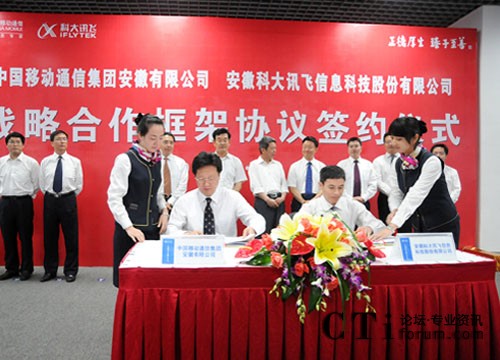 CTI論壇(ctiforum)7月14日消息(記者 張潔):7月11日下午,安徽科大訊飛信息科技股份有限公司與中國移動通信集團安徽有限公司在合肥簽署戰(zhàn)略合作框架協(xié)議。根據(jù)協(xié)議,科大訊飛和安徽移動將在技術和業(yè)務創(chuàng)新等方面開展深層次合作。