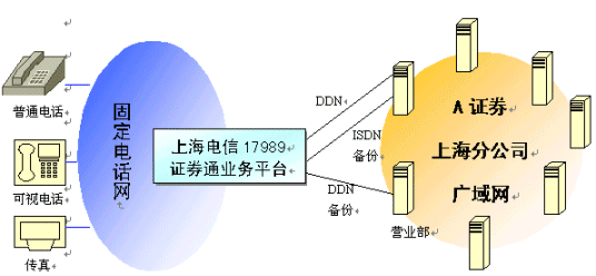"17989證券通"服務是上海電信和黎明網(wǎng)絡共同向上海地區(qū)證券公司提供的通道外包式綜合服務。與電信提供的傳統(tǒng)的固定通道收費服務不同,"17989證券通"服務的顯著特色是"集中交易,按需服務"。該項服務自推出以來,就以其低成本、集中式電話交易和大量增值服務贏得了許多證券公司的普遍關注。下面是某大型綜合性證券公司采用"17989證券通"服務的案例剖析。