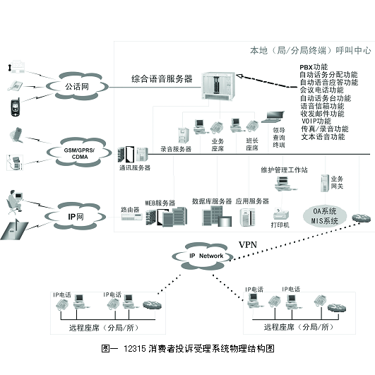 圖一是12315消費者投訴受理系統(tǒng)物理結構圖: