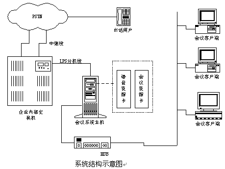 一般傳統(tǒng)電話會(huì)議的實(shí)現(xiàn)均利用企業(yè)內(nèi)部交換機(jī)(PBX)的多方通話功能(三方、四方或更多方),但有很大的局限性(如參加會(huì)議的人數(shù)有限,一般交換機(jī)不能超過(guò)8方,異地外線參加會(huì)議不方便、信號(hào)音相互干擾、模擬外線掛機(jī)不準(zhǔn)確,長(zhǎng)期占用外線、操作煩瑣等),使用戶在使用過(guò)程中遇到很多不方便。目前還有一種遠(yuǎn)程會(huì)議系統(tǒng)是專用的可視電話會(huì)議系統(tǒng),這種系統(tǒng)可以將圖像與聲音同時(shí)傳送,使用戶有親臨會(huì)場(chǎng)的感覺,但是它要有專用的會(huì)議中心、專用的會(huì)議終端設(shè)備以及專用的信息傳輸線路,系統(tǒng)造價(jià)和使用費(fèi)用均相當(dāng)高,一般用戶難以承受。