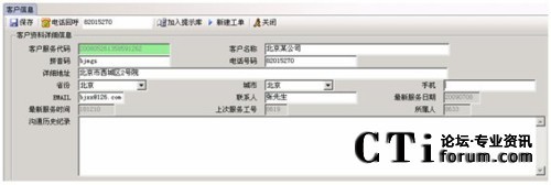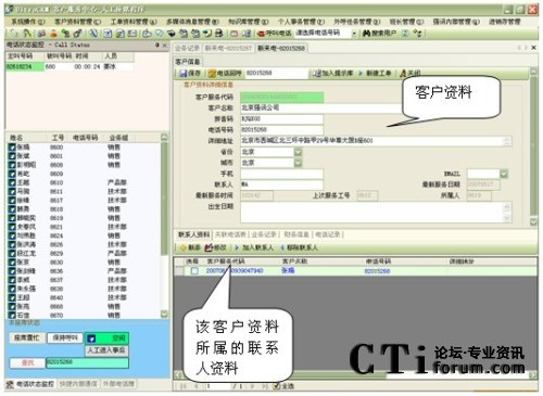 當(dāng)有電話來電時,系統(tǒng)顯示來電號碼及來電人員的客戶資料信息;