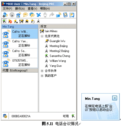系統(tǒng)提供了靈活的電話會(huì)議方式,例如:總經(jīng)理發(fā)起一個(gè)電話會(huì)議,公司的IT主管、客戶經(jīng)理參加,當(dāng)聊到IT方面時(shí),需要具體的負(fù)責(zé)人來解答一些問題,IT主管可以用MXIE或話機(jī)將他加入到會(huì)議中來,回答完畢后,他可以自己掛機(jī)退出會(huì)議,IT主管也可以將他退請出會(huì)議,而會(huì)議不會(huì)中斷。