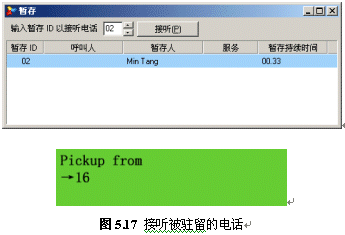接通后,如果通話內(nèi)容很緊急而又不方便在會(huì)議室進(jìn)行溝通,此時(shí),用戶可以按下話機(jī)上的“Park”按鈕,此時(shí)對方通話被導(dǎo)入到一段音樂(背景音中設(shè)定的音樂)。記住屏幕上提示的駐留號(hào)碼,即可掛機(jī):