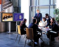 會(huì)議系統(tǒng)的組成非常簡(jiǎn)單,每個(gè)會(huì)場(chǎng)安放一臺(tái)視頻會(huì)議終端,終端接上電視機(jī)作為回顯設(shè)備、接上網(wǎng)絡(luò)作為傳輸媒介就可以了。一臺(tái)終端通常有一臺(tái)核心編解碼器、一個(gè)攝像頭,一個(gè)全向麥克風(fēng)以及一個(gè)遙控器。核心編解碼將攝像頭和麥克風(fēng)輸入的圖像及聲音編碼通過(guò)網(wǎng)絡(luò)傳走,同時(shí)將網(wǎng)絡(luò)傳來(lái)的數(shù)據(jù)解碼后將圖像和聲音還原到電視機(jī)和音響上,即實(shí)現(xiàn)了與遠(yuǎn)端的實(shí)時(shí)交互。終端通過(guò)呼叫IP地址或ISDN號(hào)碼進(jìn)行連接(專線無(wú)需撥號(hào))。但在有三點(diǎn)會(huì)場(chǎng)就必須采用MCU(視頻會(huì)議多點(diǎn)控制單元)進(jìn)行管理。