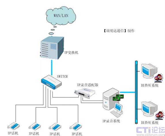 【瑞明達(dá)通信】是國內(nèi)較早從事專業(yè)計(jì)算機(jī)電話語音系統(tǒng)(CTI)產(chǎn)品的開發(fā)商, 在客戶交互式解決方案行業(yè)中有十多年的從業(yè)經(jīng)驗(yàn),具備雄厚的語音產(chǎn)品開發(fā)能力。最近幾年,基于 IP 的下一代通信,正在以前所未有的速度改變著全世界的通信架構(gòu)和商業(yè)格局!救鹈鬟_(dá)通信】作為錄音技術(shù)的領(lǐng)先廠商,就已經(jīng)具有前瞻性的潛心致力于基于IP通訊線路的多媒體記錄解決方案的研發(fā),RMD_VoIPlog錄音系統(tǒng)是由【瑞明達(dá)通信】自行開發(fā)研制的新一代IP錄音系統(tǒng)。該系統(tǒng)在記錄VoIP語音的同時(shí),所需的語音資源通過軟件方式或硬件平臺直接由網(wǎng)絡(luò)中的RTP等數(shù)據(jù)流獲取,無須和座席分機(jī)或中繼線進(jìn)行并接,因此是一種軟件/硬件分別實(shí)現(xiàn)的錄音系統(tǒng),是真正的基于IP 的錄音解決方案。RMD_VoIPlog錄音系統(tǒng),是以數(shù)字記錄、數(shù)據(jù)庫查詢、光盤存儲(chǔ)等先進(jìn)技術(shù)為手段,為通話語音的錄制、管理提供了一種先進(jìn)、科學(xué)而又行之有效的方法。二、RMD_VoIPlog錄音系統(tǒng)運(yùn)行環(huán)境
