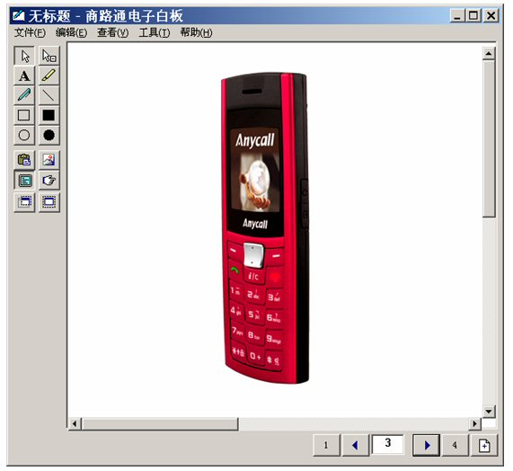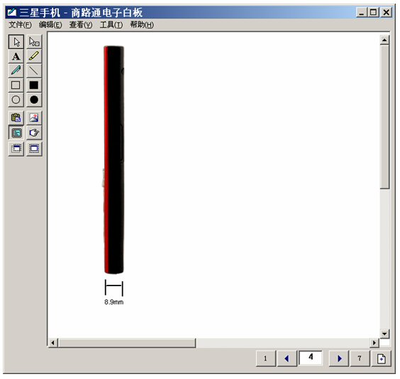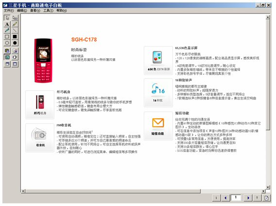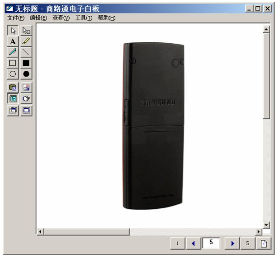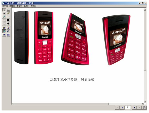 坐席進(jìn)入富媒體知識(shí)庫,調(diào)出三星手機(jī),啟動(dòng)電子白板,將這個(gè)畫面推送給客戶。