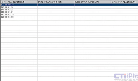 如圖4所示,管理員能得到隊列排隊的詳細(xì)信息如:來電號碼,等待時間。