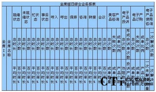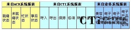 b)其它時間,報表在CTI中,各種統(tǒng)計指標都有,每天、每月、每季度、每年、按組、按技能,平均、總計、總合、最大、最小數據比較的表格、圖表,一應俱全;