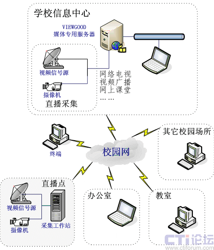 - 教育電視臺(tái):可以通過(guò)教育節(jié)目輪播或從教育電視臺(tái)采集節(jié)目,建立自己的網(wǎng)絡(luò)虛擬教育電視臺(tái)。