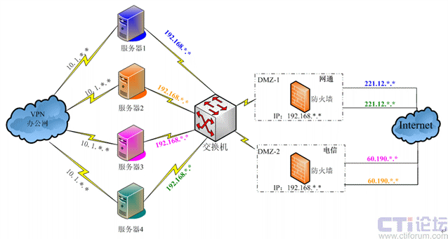 安邦保險(xiǎn)在全國(guó)各地共37個(gè)分支機(jī)構(gòu),網(wǎng)絡(luò)結(jié)構(gòu)復(fù)雜,有電信用戶(hù)、網(wǎng)通用戶(hù)以及VPN專(zhuān)網(wǎng)用戶(hù)等,系統(tǒng)平臺(tái)的搭建要能夠?qū)崿F(xiàn)不同網(wǎng)絡(luò)間實(shí)時(shí)快速的溝通。